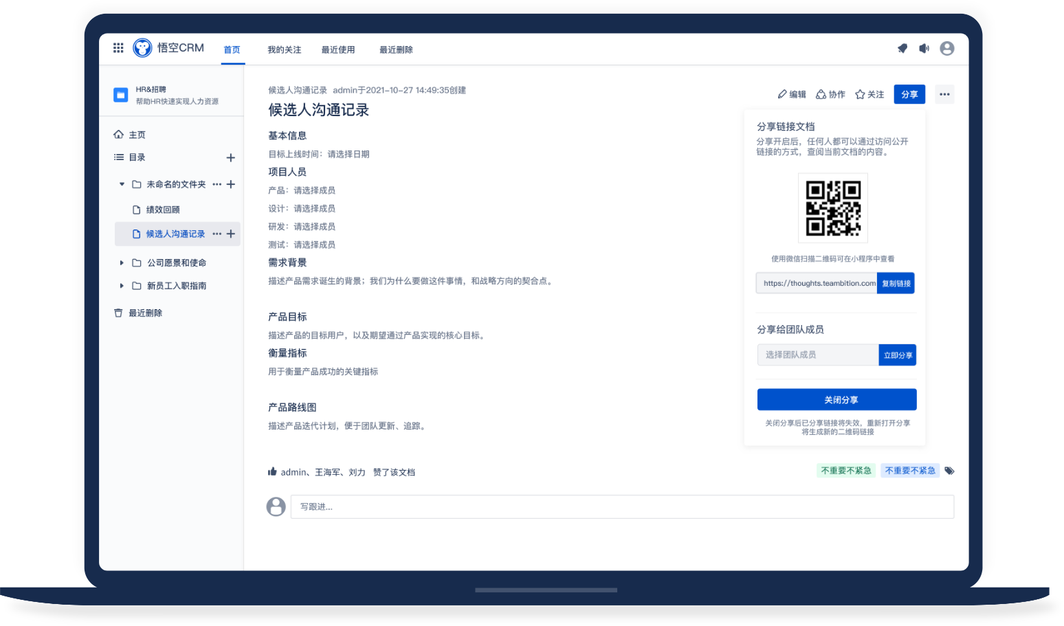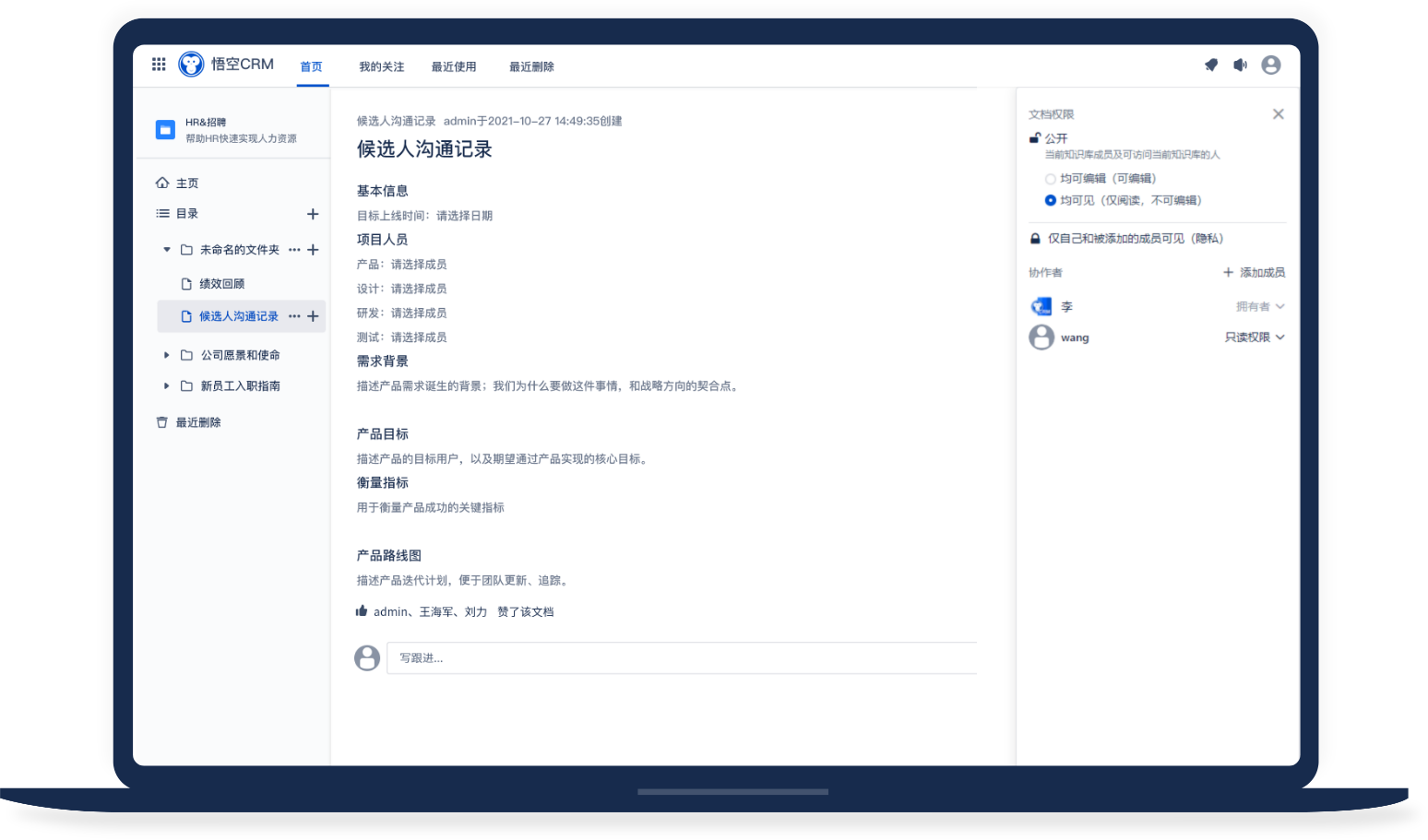 以企业财务管理人员为主,提供全面财务管理功能。无缝对接悟空CRM系统,