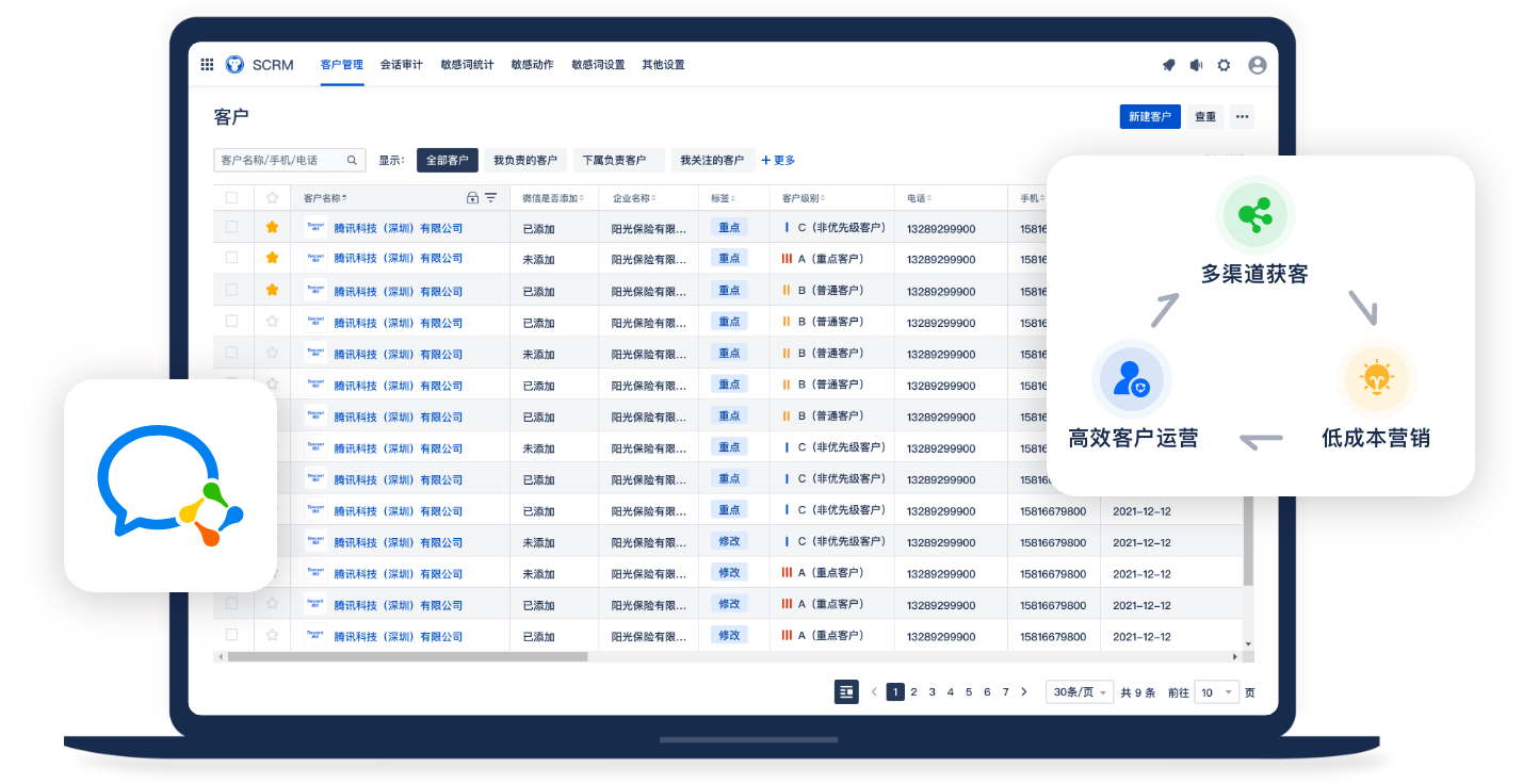 客户管理系统;实现多渠道获客,低成本营销,高效客户
